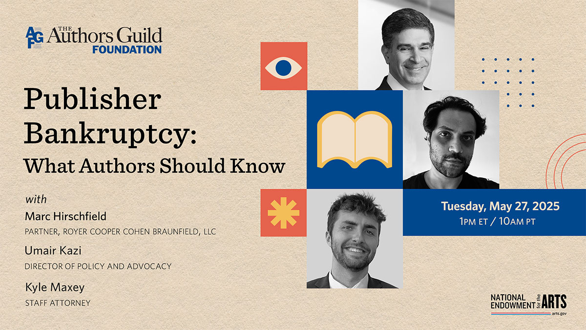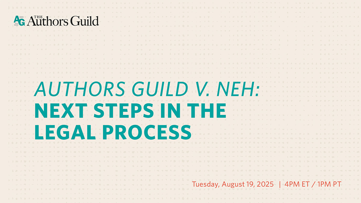 The Authors Guild exists to support working writers and their ability to earn a living from authorship. We work to protect free speech, honor copyright, and ensure fair compensation practices in the changing publishing landscape.